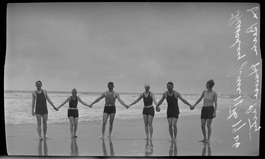 | Keywords: blackandwhite monochrome photo border black and white Virginia Beach, Virginia, June 17, 1926 L to R: Ray West, Patty Hunter, Shelton White, Peg Landon, Silas Whedbee, Elizabeth Parker. From the Surry Parker Photograph Collection, PhC.51, State Archives of North Carolina, Raleigh, NC. Virginia Beach, Virginia, June 17, 1926 L to R: Ray West, Patty Hunter, Shelton White, Peg Landon, Silas Whedbee, Elizabeth Parker. From the Surry Parker Photograph Collection, PhC.51, State Archives of North Carolina, Raleigh, NC. |