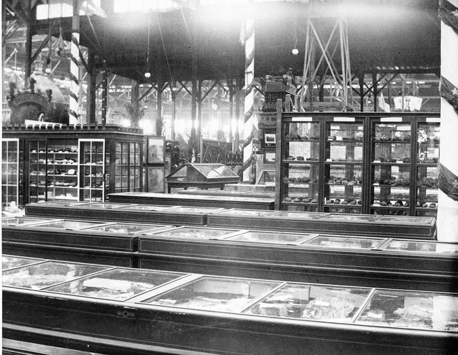 | Keywords: smithsonian institution smithsonianinstitution philadelphia 1876 centennial exhibition 1876centennialexhibition minerals exhibits display case displaycase 1876 rocks indoors late 19th century late19thcentury geology black and white blackandwhite shelves warehouse exhibit mineral structure centennial exibit centennialexibit smithsonian institution archives smithsonianinstitutionarchives blackandwhite monochrome black and white Description: Mineral exhibits at the 1876 Centennial Exhibition in Philadelphia with other exhibits visible in the background. The Smithsonian coordinated all of the U.S. Government exhibits and prepared a display on its activities and collections for the exposition. Creator/Photographer: Unidentified photographer Medium: Black and white photographic print Dimensions: 8 in x 10 in Date: 1876 Repository: Smithsonian Institution Archives Accession number: 72-2376 Description: Mineral exhibits at the 1876 Centennial Exhibition in Philadelphia with other exhibits visible in the background. The Smithsonian coordinated all of the U.S. Government exhibits and prepared a display on its activities and collections for the exposition. Creator/Photographer: Unidentified photographer Medium: Black and white photographic print Dimensions: 8 in x 10 in Date: 1876 Repository: Smithsonian Institution Archives Accession number: 72-2376 |