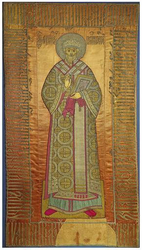 | Keywords: Philip of Moscow.jpeg Пок ов 1592 осква масте ская И ины Федо овны Годуновой Атлас шелк; шитье золотными се еб яными и шелковыми нитями 196 5 х 107 П оисходит из Соловецкого монасты я Пост в 1923 из Соловецкого монасты я че ез Г Ф Рест в 1933 в ГР А Суво овой повто но в 1963 В музейных соб аниях осквы и Пете бу га сох анилось пять лицевых пок овов с изоб ажением мит ополита Филиппа Самым анним из известных сегодня является пок ов из ГР памятник высочайшего художественного у овня и музейного достоинства Об аз мит ополита Филиппа на нем соответствует екомендациям иконописного подлинника В с еднике изоб ажен святитель в полном а хие ейском облачении по кайме вязью с выносными буквами тонко «п описаны» т опа ь и кондак Лик и уки исполнены «атласным швом» без оттенений «миниатю ными» стежками Особенная «нежность и мягкость» об азного ешения свобода в исунке и масте ское исполнение п оизведения позволили Л Д Лихачевой отнести его к аботам светлиц ца ицы И ины Федо овны Годуновой и дати овать 1590-ми годами А аясова отмечая бесспо ные п офессиональные достоинства памятника дати ует его 1650-ми годами в еменем ца я Алексея ихайловича http //fotki yandex ru/users/lalaifff/view/334605/ page 1 1592 осква масте ская И ины Федо овны Годуновой Irina Godunova Embroidery of Russian tsarinas and Grand Duchess Embroidery in Russian museum 16th-century Russian orthodox embroidery Files uploaded by Shakko from various sources Pokrov embroidery Philipp I Metropolitan of Moscow PD-Art-100 |