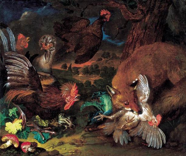 | Keywords: Philipp Ferdinand de Hamilton - Fox in the Courtyard - WGA11201.jpg Artwork Creator Philipp Ferdinand de Hamilton 1746 Oil on canvas size cm 77 88 Private collection accession number object history credit line WGA link 11201 http //www wga hu/art/h/hamilto/foxcourt jpg http //www wga hu/html/h/hamilto/foxcourt html PD-old-100 painting still-life Scottish 1701-1750 Philipp Ferdinand de Hamilton 18th-century paintings in unidentified private collections 1746 paintings WGA form painting WGA type still-life WGA School Scottish WGA time period 1701-1750 17th-century paintings of animals |