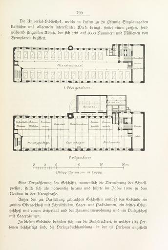 | Keywords: Philipp reclam junior - leipzig und seine bauten 799.jpg de Der Verlag Philipp Reclam Jr - Beschreibung in Leipzig und seine Bauten 1892 S 799 1892 Vereinigung Leipziger Architekten und Ingenieure Hrsg Leipzig und seine Bauten zur X Wanderversammlung des Verbandes Deutscher Architekten- und Ingenieur-Vereine in Leipzig vom 28 bis 31 August 1892 J M Gebhardt's Verlag Leopold Gebhardt Leipzig 1892 p 798-800 author other versions PD-old-70-1923 Reclam-Verlag | ||||