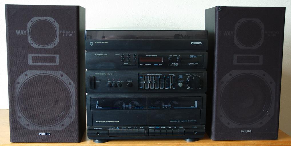 | Keywords: Philips-F1385-stereo-20140831-001.jpg en Philips F1385/10 integrated stereo system probably sold in Australia in the 1980s The back panel reads in all caps Type F 1385/10<br> 240V~50/60Hz 80W<br> Philips<br> Made in Singapore 2014-08-31 02 39 45 UTC own Gary Houston cc-zero Uploaded with UploadWizard Philips audio products Taken with Nikon D70 Consumer audio equipment Mini Hi-Fi component systems | ||||