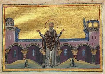 Keywords: Philotheus the presbyter of Myrmix (Bythnia).jpg Святой п есвите и чудотво ец Филофей авинский Константинополь 985 г иниатю а инология Василия II Ватиканская библиотека Рим http //www patriarchia ru 985 г anonymous PD-Art Menologion of Basil II Files uploaded by Shakko from various sources