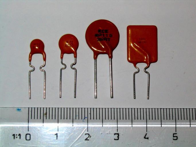 Keywords: Photo-Polyswitch.jpg en Polyswitch PTC own 2005-11-06 Shaddack Fuses Positive temperature coefficient thermistors Images with rulers to indicate scale