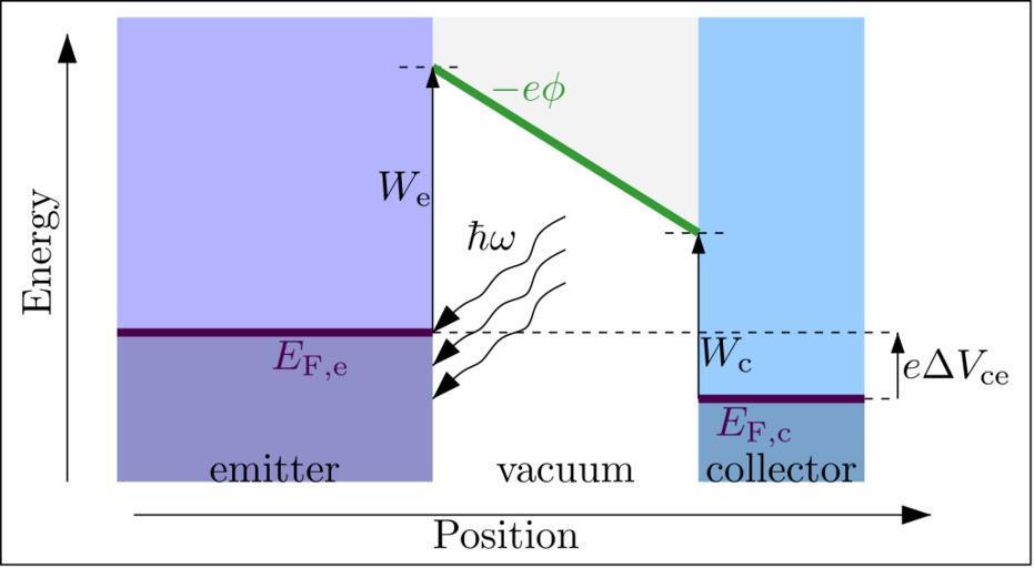 | Keywords: Photoelectric diode forward bias.svg en Photoelectric effect setup forward biased for measuring the work function of the emitter 2013-06-17 21 30 54 own Nanite Source code Made using Ipe Source code below also placed into public domain <source lang xml > < xml version 1 0 > < DOCTYPE ipe SYSTEM ipe dtd > <ipe version 70005 creator Ipe 7 1 2 > <info created D 20130513204549 modified D 20130617212355 /> <ipestyle name cust > <symbol name arrow/fnormal spx > <path fill black > 0 0 m -1 0 333 l -1 -0 333 l h </path> </symbol> <pen name heavier value 0 8 /> <pen name fat value 1 2 /> <pen name ultrafat value 2 /> <symbolsize name large value 5 /> <symbolsize name small value 2 /> <symbolsize name tiny value 1 1 /> <arrowsize name large value 10 /> <arrowsize name small value 5 /> <arrowsize name tiny value 3 /> <dashstyle name dashed value 4 0 /> <dashstyle name finedash value 2 0 /> <textsize name large value \large /> <textsize name small value \small /> <textsize name tiny value \tiny /> <textsize name Large value \Large /> <textsize name LARGE value \LARGE /> <textsize name huge value \huge /> <textsize name Huge value \Huge /> <textsize name footnote value \footnotesize /> <textstyle name center begin \begin center end \end center /> <textstyle name itemize begin \begin itemize end \end itemize /> <textstyle name item begin \begin itemize \item end \end itemize /> <gridsize name 4 pts value 4 /> <gridsize name 8 pts ~3 mm value 8 /> <gridsize name 16 pts ~6 mm value 16 /> <gridsize name 32 pts ~12 mm value 32 /> <gridsize name 10 pts ~3 5 mm value 10 /> <gridsize name 20 pts ~7 mm value 20 /> <gridsize name 14 pts ~5 mm value 14 /> <gridsize name 28 pts ~10 mm value 28 /> <gridsize name 56 pts ~20 mm value 56 /> <anglesize name 90 deg value 90 /> <anglesize name 60 deg value 60 /> <anglesize name 45 deg value 45 /> <anglesize name 30 deg value 30 /> <anglesize name 22 5 deg value 22 5 /> <opacity name filled value 0 2 /> <layout paper 248 136 origin 0 0 frame 248 136 /> <gradient name bluered type axial coords 0 0 32 0 > <stop offset 0 color 0 7 0 7 1 /> <stop offset 1 color 1 0 7 0 7 /> </gradient> <tiling name falling angle -60 step 4 width 1 /> <tiling name rising angle 30 step 4 width 1 /> </ipestyle> <page> <layer name alpha /> <layer name BBOX /> <view layers alpha BBOX active alpha /> <path layer alpha fill 0 95 > 100 132 m 104 120 l 168 80 l 172 132 l h </path> <path fill 0 7 0 7 1 > 104 132 m 104 20 l 28 20 l 28 132 l h </path> <path matrix 1 0 0 1 -120 -644 fill 0 6 0 8 1 > 288 776 m 288 664 l 328 664 l 328 776 l h </path> <path fill black opacity filled > 208 40 m 208 20 l 168 20 l 168 40 l h </path> <path fill black opacity filled > 28 56 m 104 56 l 104 20 l 28 20 l </path> <path matrix 1 0 0 1 0 4 stroke black pen ultrafat > 4 100 m 4 100 l 4 100 l 4 100 l h </path> <path stroke black arrow fnormal/normal > 16 20 m 16 128 l </path> <path matrix 1 0 0 1 -104 -652 stroke black arrow fnormal/normal > 136 664 m 328 664 l </path> <text matrix 0 1 -1 0 796 -100 pos 160 784 stroke black type label width 30 884 height 6 815 depth 1 93 valign baseline >Energy</text> <text matrix 1 0 0 1 -17 337 -665 875 transformations translations pos 101 337 719 875 stroke black type label width 18 901 height 6 808 depth 2 85 halign right valign top >\textcolorrgb 0 3 0 0 3 E_ \rm F e </text> <text matrix 1 0 0 1 -88 -652 transformations translations pos 192 656 stroke black type label width 35 34 height 6 808 depth 0 valign baseline >Position</text> <path matrix 1 0 0 1 -120 -640 stroke black dash finedash > 216 760 m 232 760 l </path> <path matrix 1 0 0 1 -56 -680 stroke black dash finedash > 216 760 m 232 760 l </path> <path matrix 1 0 0 1 -16 -720 stroke black dash finedash > 216 760 m 232 760 l </path> <text matrix 1 0 0 1 -124 -636 transformations translations pos 228 724 stroke black type label width 13 45 height 6 812 depth 1 49 halign right valign baseline > W_ \rm e </text> <text matrix 1 0 0 1 -60 -676 transformations translations pos 228 724 stroke black type label width 13 45 height 6 812 depth 1 49 valign baseline > W_ \rm c </text> <text matrix 1 0 0 1 -118 -772 transformations translations pos 184 792 stroke black type label width 31 576 height 6 654 depth 0 halign center valign baseline >emitter</text> <text matrix 1 0 0 1 -48 -772 transformations translations pos 184 792 stroke black type label width 33 486 height 4 289 depth 0 halign center valign baseline >vacuum</text> <text matrix 1 0 0 1 4 -772 transformations translations pos 184 792 stroke black type label width 36 557 height 6 918 depth 0 halign center valign baseline >collector</text> <text matrix 1 0 0 1 -39 -67 transformations translations pos 256 112 stroke black type label width 26 335 height 6 812 depth 1 49 valign baseline > e\Delta V_ \rm ce </text> <text matrix 1 0 0 1 70 663 -681 875 transformations translations pos 101 337 719 875 stroke black type label width 18 901 height 6 808 depth 2 85 valign top >\textcolorrgb 0 3 0 0 3 E_ \rm F c </text> <text matrix 1 0 0 1 -112 -680 transformations translations pos 248 792 stroke black type label width 18 324 height 6 926 depth 1 93 halign right valign baseline >\textcolorrgb 0 2 0 6 0 2 -e\phi </text> <path stroke black > 188 132 m 188 132 l 188 132 l 188 132 l h </path> <path layer BBOX stroke black > 0 0 m 0 136 l 248 136 l 248 0 l h </path> <path layer alpha stroke 0 2 0 6 0 2 pen ultrafat > 104 120 m 168 80 l </path> <path matrix 1 0 0 1 -16 -16 stroke 0 3 0 0 3 pen ultrafat > 184 56 m 224 56 l </path> <path matrix 1 0 0 1 -120 -664 stroke black rarrow fnormal/small > 288 744 m 288 704 l </path> <path matrix 1 0 0 1 -120 -640 stroke black rarrow fnormal/small > 224 760 m 224 696 l </path> <path stroke black rarrow fnormal/small > 216 56 m 216 40 l </path> <path matrix 1 0 0 1 -120 -656 stroke black dash finedash > 184 712 m 336 712 l </path> <path stroke 0 3 0 0 3 pen ultrafat > 28 56 m 104 56 l </path> <path matrix 1 0 0 1 0 -20 stroke black rarrow fno
