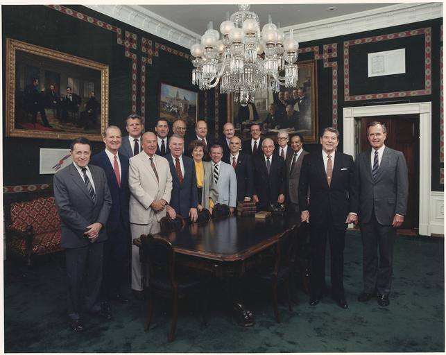 | Keywords: Photograph of 1987 Cabinet - Class Photo - NARA - 198586.jpg Scope and content General notes 198586 Local identifier President 1981-1989 Reagan White House Photographic Office 1981 - 1989 Ronald Reagan Library NLRR 40 Presidential Drive Simi Valley CA 93065-0600 date 1987 07 01 - 1987 07 01 Record group Collection RR-WHPO White House Photographic Collection 01/20/1981 - 01/20/1989 Record group ARC 1192 Reagan White House Photographs compiled 01/20/1981 - 01/20/1989 documenting the period 1915 - 01/20/1989 Series ARC 198505 File unit File unit ARC Variant control numbers NAIL Control Number NLS-WHPO-A-C41605 11 Other versions <gallery> File Photograph_of_1987_Cabinet_-_Class_Photo_-_NARA_-_198586 tif tif File Photograph_of_1987_Cabinet_-_Class_Photo_-_NARA_-_198586 jpg jpg </gallery> NARA-cooperation PD-USGov United States Cabinets 1987 |