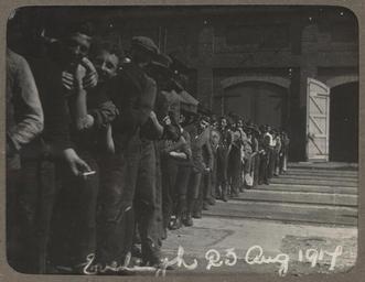 | Keywords: archives state records nsw staterecordsnsw newsouthwales blackandwhite rail strike eveleigh queue monochrome black and white Title: Photograph album of Eveleigh Workshops during the 1917 railway strike - Waiting for dinner Dated: 23/08/1917 Digital ID: 15309_a015_000026 Series: NRS 15309 Photograph album of Eveleigh Workshops during the 1917 railway strike Rights: No known copyright restrictions www.records.nsw.gov.au/about-us/rights-and-permissions We'd love to hear from you if you use our photos/documents. Many other photos in our collection are available to view and browse on our website using Photo Investigator. Title: Photograph album of Eveleigh Workshops during the 1917 railway strike - Waiting for dinner Dated: 23/08/1917 Digital ID: 15309_a015_000026 Series: NRS 15309 Photograph album of Eveleigh Workshops during the 1917 railway strike Rights: No known copyright restrictions www.records.nsw.gov.au/about-us/rights-and-permissions We'd love to hear from you if you use our photos/documents. Many other photos in our collection are available to view and browse on our website using Photo Investigator. |