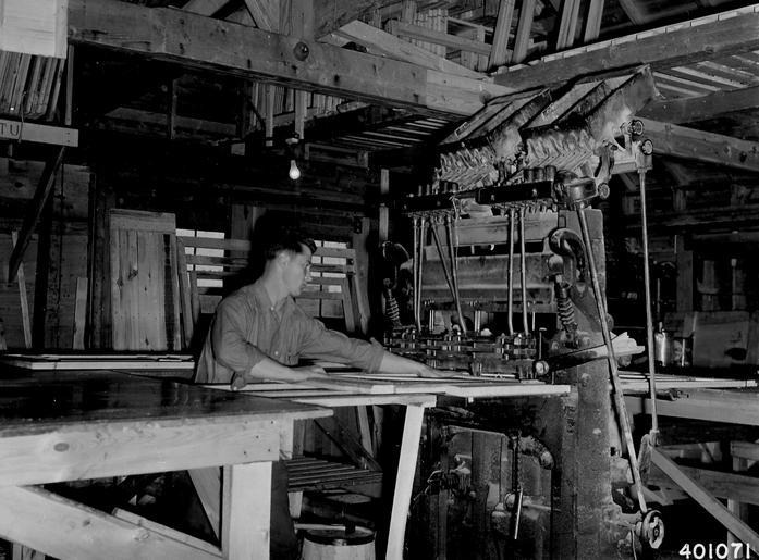 Keywords: Photograph of Automatic Nailing Machines - NARA - 2128851.tif Scope and content Original caption Automatic nailing machines being used in assembling stoker packer frames for standard chassis Assembly line production is used crews of resaws cutting various pieces which converge to an assembly table where the pieces are assembled in wood frame and General notes 2128851 Local identifier 401071 Department of Agriculture Forest Service Region 9 Eastern Region 1965 - Most Recent <br /> Department of Agriculture Division of Forestry 1881 - 07/01/1901 Predecessor NARA-Place Chippewa National Forest Minn 4509445 <br /> NARA's Great Lakes Region Chicago NRDA 7358 South Pulaski Road Chicago IL 60629-5898 08/1940 Record group Record Group 95 Records of the Forest Service 1870 - 2008 Record group ARC 424 Historic Photographs compiled ca 1880 - ca 1970 Series ARC 1812856 File unit File unit ARC Variant control numbers Agency-Assigned Identifier 401071 yes Other versions <gallery> File Photograph_of_Automatic_Nailing_Machines_-_NARA_-_2128851 tif tif File Photograph_of_Automatic_Nailing_Machines_-_NARA_-_2128851 jpg jpg </gallery> NARA-cooperation PD-USGov NARA TIF images with categorized JPGs |