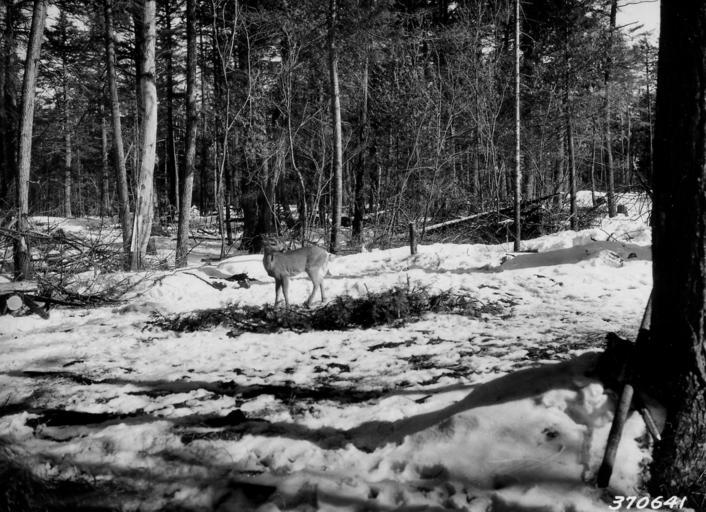 | Keywords: Photograph of a Deer Surveying the Surrounding Area - NARA - 2128178.jpg Scope and content Original caption A deer surveys the surrounding area before feeding on cedar browse scattered out in an opening General notes 2128178 Local identifier 370641 Department of Agriculture Forest Service Region 9 Eastern Region 1965 - Most Recent <br /> Department of Agriculture Division of Forestry 1881 - 07/01/1901 Predecessor NARA-Place Ottawa National Forest Mich 3914527 46 5 -89 5 <br /> NARA's Great Lakes Region Chicago NRDA 7358 South Pulaski Road Chicago IL 60629-5898 1938-02-18 Record group Record Group 95 Records of the Forest Service 1870 - 2008 Record group ARC 424 Historic Photographs compiled ca 1880 - ca 1970 Series ARC 1812856 File unit File unit ARC Variant control numbers Agency-Assigned Identifier 370641 Other versions <gallery> File Photograph_of_a_Deer_Surveying_the_Surrounding_Area_-_NARA_-_2128178 tif tif File Photograph_of_a_Deer_Surveying_the_Surrounding_Area_-_NARA_-_2128178 jpg jpg </gallery> NARA-cooperation PD-USGov Ottawa National Forest Odocoileus virginianus historical images Winter in Michigan |
