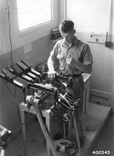 | Keywords: Photograph of Hose Splicing and Patching Machine - NARA - 2128725.jpg Scope and content Original caption Hose splicing patching machine made in the Ely warehouse shop by Ben Wiley from plans borrowed from the Canadian-Ontario Forestry Branch This machine is used to repair fire hose damaged by use in fires R C Donovan is shown making a splice at left General notes 2128725 Local identifier 400343 Department of Agriculture Forest Service Region 9 Eastern Region 1965 - Most Recent <br /> Department of Agriculture Division of Forestry 1881 - 07/01/1901 Predecessor NARA-Place Superior National Forest Lake Minnesota forest 4075007 47 75 -91 5 <br /> NARA's Great Lakes Region Chicago NRDA 7358 South Pulaski Road Chicago IL 60629-5898 1940-08-03 Record group Record Group 95 Records of the Forest Service 1870 - 2008 Record group ARC 424 Historic Photographs compiled ca 1880 - ca 1970 Series ARC 1812856 File unit File unit ARC Variant control numbers Agency-Assigned Identifier 400343 Other versions <gallery> File Photograph_of_Hose_Splicing_and_Patching_Machine_-_NARA_-_2128725 tif tif File Photograph_of_Hose_Splicing_and_Patching_Machine_-_NARA_-_2128725 jpg jpg </gallery> NARA-cooperation PD-USGov USDA NARA images from the Dept of Forestry |