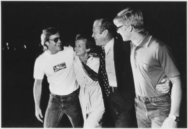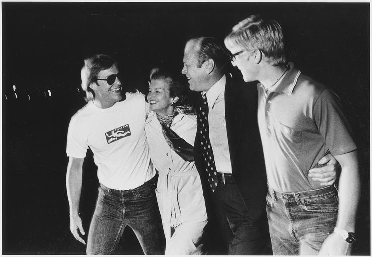 | Keywords: Photograph of Jack and Steve Ford Meeting Their Parents, President Gerald Ford and First Lady Betty Ford on the South... - NARA - 186818.tif  This photograph depicts President and Mrs Ford walking arm in arm with Jack and Steve flanking them at 10 50 pm<ref> Citation White House September 5 1975 Daily Diary of President Gerald R Ford September 45 1975 President's Daily Diary Collection Box 77 at the Gerald R Ford Presidential Library 12 http //www fordlibrarymuseum gov/library/document/0036/pdd750905 pdf November 26 2012 </ref> on Friday September 5 1975 The President had just returned from Sacramento California where Lynette Squeaky Fromme had made an attempt on his life General notes 186818 Local identifier GRF-WHPO-A6311 28 President 1974-1977 Ford White House Photographic Office 1974 - 1977 Creator David Hume Kennerly <br> Kennerly David Hume 1947- Photographer 1312484 Institution Gerald R Ford Presidential Library Gerald R Ford Library NLGRF 1000 Beal Avenue Ann Arbor MI 48109-2114 1975-09-05 Record group Collection GRF-WHPO White House Photographic Office Collection Ford Administration 12/06/1973 - 01/20/1977 Record group ARC 1136 Gerald R Ford White House Photographs compiled 08/09/1974 - 01/20/1977 Series ARC 1756311 File unit File unit ARC Variant control numbers NAIL Control Number NLF-WHPO-A-A6311 28 yes Other versions References Reflist Gerald R Ford Presidential Library and Museum-cooperation PD-USGov 1975 in Washington D C Betty and Gerald Ford Ford assassination attempt in Sacramento Photographs at the Gerald R Ford Presidential Library and Museum Jack Ford Steven Ford Gerald Ford in 1975 Photographs by David Hume Kennerly from 1975 Gerald R Ford Presidential Library and Museum series Gerald R Ford White House Photographs compiled 08/09/1974 - 01/20/1977 |