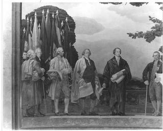 | Keywords: nara:arcid=7820690 u.s. national archives usnationalarchives national archives building nationalarchivesbuilding blackandwhite monochrome photo border outdoor surreal black and white Original Caption: Photograph of the Left Section of the Mural, The Constitution, by Barry Faulkner, 10/27/1936 U.S. National Archives’ Local Identifier: 64-NA-119 Scope and Content Note:In this detail of the Barry Faulkner mural, The Constitution, the figures pictured from left to right are: Edmund Randolph, Nathanial Gorham, John Dickinson, John Rutledge, James Wilson, Oliver Ellsworth, and Charles Pinckney. From: Series : Historic Photograph File of National Archives Events and Personnel, compiled 1935 - 1975, documenting the period ca. 1928 - 1975 Created By: General Services Administration. National Archives and Records Service. Office of Educational Programs. Education Division. (? - 04/01/1985) Production Date: 10/27/1936 Persistent URL: research.archives.gov/description/7820690 Repository: National Archives at College Park - Still Pictures (RD-DC-S), National Archives at College Park For information about ordering reproductions of photographs held by the Still Picture Unit, visit: www.archives.gov/research/order/still-pictures.html Reproductions may be ordered via an independent vendor. NARA maintains a list of vendors at www.archives.gov/research/order/vendors-photos-maps-dc.html Original Caption: Photograph of the Left Section of the Mural, The Constitution, by Barry Faulkner, 10/27/1936 U.S. National Archives’ Local Identifier: 64-NA-119 Scope and Content Note:In this detail of the Barry Faulkner mural, The Constitution, the figures pictured from left to right are: Edmund Randolph, Nathanial Gorham, John Dickinson, John Rutledge, James Wilson, Oliver Ellsworth, and Charles Pinckney. From: Series : Historic Photograph File of National Archives Events and Personnel, compiled 1935 - 1975, documenting the period ca. 1928 - 1975 Created By: General Services Administration. National Archives and Records Service. Office of Educational Programs. Education Division. (? - 04/01/1985) Production Date: 10/27/1936 Persistent URL: research.archives.gov/description/7820690 Repository: National Archives at College Park - Still Pictures (RD-DC-S), National Archives at College Park For information about ordering reproductions of photographs held by the Still Picture Unit, visit: www.archives.gov/research/order/still-pictures.html Reproductions may be ordered via an independent vendor. NARA maintains a list of vendors at www.archives.gov/research/order/vendors-photos-maps-dc.html |
