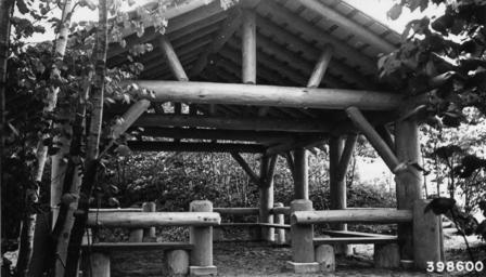 | Keywords: Photograph of Log Shelter - NARA - 2128678.jpg Scope and content Original caption Log shelter Excellent construction in light sandy location Good grade elevation Preservation of existing birch dogwood aspen cedar and ground cover plants which lend to the attractiveness of the building General notes 2128678 Local identifier 398600 Department of Agriculture Forest Service Region 9 Eastern Region 1965 - Most Recent <br /> Department of Agriculture Division of Forestry 1881 - 07/01/1901 Predecessor NARA-Place Hiawatha National Forest Mich 3699984 46 167 -86 667 <br /> Michigan Lake 4213657 44 -87 <br /> NARA's Great Lakes Region Chicago NRDA 7358 South Pulaski Road Chicago IL 60629-5898 06/1940 Record group Record Group 95 Records of the Forest Service 1870 - 2008 Record group ARC 424 Historic Photographs compiled ca 1880 - ca 1970 Series ARC 1812856 File unit File unit ARC Variant control numbers Agency-Assigned Identifier 398600 Other versions <gallery> File Photograph_of_Log_Shelter_-_NARA_-_2128678 tif tif File Photograph_of_Log_Shelter_-_NARA_-_2128678 jpg jpg </gallery> NARA-cooperation PD-USGov Hiawatha National Forest Picnic shelters in the United States Timber construction |