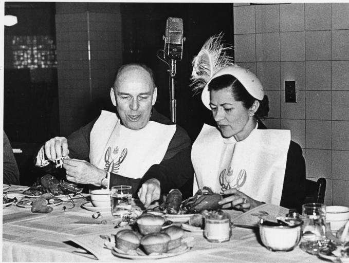 Keywords: nara:arcid=6233755 1950s 1951 maine lobster dinner man woman hat plume microphone bib balding smile rolls u.s. national archives usnationalarchives harry s. truman library harrystrumanlibrary monochrome people blackandwhite black and white Original Caption: Photograph of Maine State Society Lobster Dinner, 02/21/1951 Created By: National Archives and Records Administration. Office of Presidential Libraries. Harry S. Truman Library. (04/01/1985 - ) From: Series: Photographs Relating to the Administration, Family, and Personal Life of Harry S. Truman, compiled 1957 - 2004, documenting the period 1849 - 2004 Contact: Harry S. Truman Library (NLHST), 500 West U.S. Highway 24, Independence, MO, 64050-1798. PHONE: 816-268-8272; FAX: 816-268-8295; EMAIL:truman.reference@nara.gov. Production Dates: 02/21/1951 Scope and Content Note: Senator Owen Brewster (left) and Ann (Mrs. Oscar) Chapman at the Maine State Society lobster dinner in the Department of the Interior cafeteria. Persistent URL: arcweb.archives.gov/arc/action/ExternalIdSearch?id=6233755 Truman Library URL: www.trumanlibrary.org/photographs/view.php?id=42378&rr= Access Restrictions: Unrestricted Use Restrictions: Unrestricted Original Caption: Photograph of Maine State Society Lobster Dinner, 02/21/1951 Created By: National Archives and Records Administration. Office of Presidential Libraries. Harry S. Truman Library. (04/01/1985 - ) From: Series: Photographs Relating to the Administration, Family, and Personal Life of Harry S. Truman, compiled 1957 - 2004, documenting the period 1849 - 2004 Contact: Harry S. Truman Library (NLHST), 500 West U.S. Highway 24, Independence, MO, 64050-1798. PHONE: 816-268-8272; FAX: 816-268-8295; EMAIL:truman.reference@nara.gov. Production Dates: 02/21/1951 Scope and Content Note: Senator Owen Brewster (left) and Ann (Mrs. Oscar) Chapman at the Maine State Society lobster dinner in the Department of the Interior cafeteria. Persistent URL: arcweb.archives.gov/arc/action/ExternalIdSearch?id=6233755 Truman Library URL: www.trumanlibrary.org/photographs/view.php?id=42378&rr= Access Restrictions: Unrestricted Use Restrictions: Unrestricted |