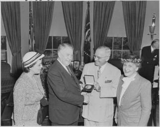 | Keywords: Photograph of President Truman in the Oval Office, shaking hands with Vice President Alben Barkley as he presents him... - NARA - 200220.jpg Scope and content General notes 200220 Local identifier National Archives and Records Administration Office of Presidential Libraries Harry S Truman Library 04/01/1985 - NARA-Author Rowe Abbie 1905-1967 Photographer 8451352 <br /> Harry S Truman Library NLHST 500 West U S Highway 24 Independence MO 64050-1798 1950-06-02 Record group Collection HST-AVC Audiovisual Collection 1957 - 2006 Record group ARC 1207 Photographs Relating to the Administration Family and Personal Life of Harry S Truman compiled 1957 - 2004 documenting the period 1849 - 2004 Series ARC 198606 File unit File unit ARC Variant control numbers NAIL Control Number NLT-AVC-PHT- 73 3349 Other versions <gallery> File Photograph_of_President_Truman_in_the_Oval_Office _shaking_hands_with_Vice_President_Alben_Barkley_as_he_presents_him _-_NARA_-_200220 tif tif File Photograph_of_President_Truman_in_the_Oval_Office _shaking_hands_with_Vice_President_Alben_Barkley_as_he_presents_him _-_NARA_-_200220 jpg jpg </gallery> NARA-cooperation PD-USGov Alben Barkley Nellie Tayloe Ross Harry S Truman in the Oval Office Jane Hadley Barkley Photographs by Abbie Rowe Black and white photographs |