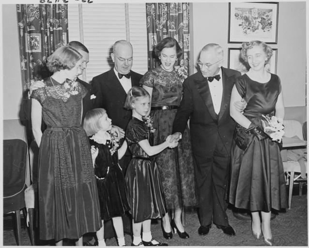 | Keywords: Photograph of President Truman shaking hands with an unidentified young girl at the National Press Club during a... - NARA - 200260.jpg Scope and content General notes 200260 Local identifier National Archives and Records Administration Office of Presidential Libraries Harry S Truman Library 04/01/1985 - NARA-Author Rowe Abbie 1905-1967 Photographer 8451352 <br /> Harry S Truman Library NLHST 500 West U S Highway 24 Independence MO 64050-1798 1950-12-13 Record group Collection HST-AVC Audiovisual Collection 1957 - 2006 Record group ARC 1207 Photographs Relating to the Administration Family and Personal Life of Harry S Truman compiled 1957 - 2004 documenting the period 1849 - 2004 Series ARC 198606 File unit File unit ARC Variant control numbers NAIL Control Number NLT-AVC-PHT- 73 3478 Other versions <gallery> File Photograph_of_President_Truman_shaking_hands_with_an_unidentified_young_girl_at_the_National_Press_Club_during_a _-_NARA_-_200260 tif tif File Photograph_of_President_Truman_shaking_hands_with_an_unidentified_young_girl_at_the_National_Press_Club_during_a _-_NARA_-_200260 jpg jpg </gallery> NARA-cooperation PD-USGov Margaret Truman John W Snyder Drucie Snyder Horton Photographs by Abbie Rowe Black and white photographs |