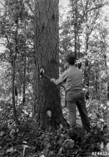 Keywords: Photograph of a Ranger Marking a Tree for Cutting - NARA - 2129483.jpg Scope and content Original caption Ranger marks or otherwise designates trees for cutting General notes 2129483 Local identifier 424833 Department of Agriculture Forest Service Region 9 Eastern Region 1965 - Most Recent <br /> Department of Agriculture Division of Forestry 1881 - 07/01/1901 Predecessor NARA-Place Mark Twain National Forest Mo 3817536 37 -91 5 <br /> NARA's Great Lakes Region Chicago NRDA 7358 South Pulaski Road Chicago IL 60629-5898 10/1942 Record group Record Group 95 Records of the Forest Service 1870 - 2008 Record group ARC 424 Historic Photographs compiled ca 1880 - ca 1970 Series ARC 1812856 File unit File unit ARC Variant control numbers Agency-Assigned Identifier 424833 Other versions <gallery> File Photograph_of_a_Ranger_Marking_a_Tree_for_Cutting_-_NARA_-_2129483 tif tif File Photograph_of_a_Ranger_Marking_a_Tree_for_Cutting_-_NARA_-_2129483 jpg jpg </gallery> NARA-cooperation PD-USGov Mark Twain National Forest |