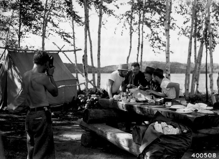 | Keywords: Photograph of Two Forest Officers - NARA - 2128771.jpg Scope and content Original caption Two forest officers Bill Trygg and Merle Moltrup visit three vacationists camping at a canoe camp site on Birch Point on the south arm of Knife Lake For a pictorial record of their trip one of the campers is taking a still picture of the forest officer General notes 2128771 Local identifier 400508 Department of Agriculture Forest Service Region 9 Eastern Region 1965 - Most Recent <br /> Department of Agriculture Division of Forestry 1881 - 07/01/1901 Predecessor NARA-Place Superior National Forest Lake Minnesota forest 4075007 47 75 -91 5 <br /> NARA's Great Lakes Region Chicago NRDA 7358 South Pulaski Road Chicago IL 60629-5898 08/1940 Record group Record Group 95 Records of the Forest Service 1870 - 2008 Record group ARC 424 Historic Photographs compiled ca 1880 - ca 1970 Series ARC 1812856 File unit File unit ARC Variant control numbers Agency-Assigned Identifier 400508 Other versions <gallery> File Photograph_of_Two_Forest_Officers_-_NARA_-_2128771 tif tif File Photograph_of_Two_Forest_Officers_-_NARA_-_2128771 jpg jpg </gallery> NARA-cooperation PD-USGov USDA NARA images from the Dept of Forestry |