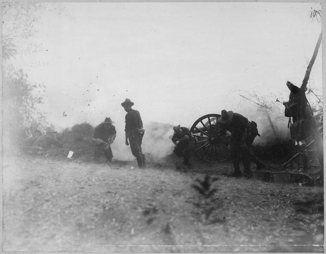 Keywords: Photograph of Utah Battery on McCloud Hill - NARA - 524388.tif Local identifier 111-AG-3 7 War Department Office of the Chief Signal Officer 08/01/1866 - 09/18/1947 Still Picture Records Section Special Media Archives Services Division NWCS-S National Archives at College Park 8601 Adelphi Road College Park MD 20740-6001 1899-02-05 Record group Record Group 111 Records of the Office of the Chief Signal Officer 1860 - 1985 Record group ARC 440 Images Collected by Brigadier General Adolphus W Greely Chief Signal Officer 1887-1906 compiled 1865 - 1935 Series ARC 524379 Variant control numbers NAIL Control Number NWDNS-111-AG-3 7 <br /> Search Identifier siLearning Center<br /> Search Identifier siNational History Standard Era 6 General notes Use War and Conflict Number 314 when ordering a reproduction or requesting information about this image Scope and content Original caption Fire Utah Battery on McCloud Hill Sunday morning February 5 1899 This shot did great execution among the Insurgents on San Juan Bridge A soldier was killed near this gun a few minutes after this shot Greely Collection File unit File unit ARC yes NARA-cooperation PD-USGov 1899 photographs United States Army in the Philippine-American War Battle of Manila 1899 Attack Unidentified artillery Artillerymen |