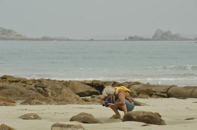 Keywords: photographer camera close up woman beach rock sand sea ocean horizon landscape