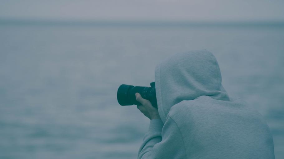 Keywords: photographer camera person photographing professional hobby digital lens looking photo male holding ocean water sea photographic taking