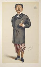 | Keywords: Phya Bhaskarawongse, Vanity Fair, 1879-09-13.jpg Statesmen No 313 Caricature of HE Phya Bhaskarawongse Special Envoy to England <br> Caption reads Siam Vanity Fair ISOdate 1879-09-13 en Digitised version from http //www flickr com/photos/26746018 N03/3445166622 CCNY Libraries on Flickr Note The City College of New York libraries claim copyright to the image but per Commons policy and US case law a faithful reproduction of a 2D image grants no new copyright 1879-09-13 Spy Creator Leslie Ward PD-old-auto 1922 DEFAULTSORT Bhaskarawongse Phya Vanity Fair caricatures diplomats Caricatures by Leslie Ward in Vanity Fair Historical figures of Thailand Bunnag family 1848 births Government officials of Thailand Military people of Thailand |