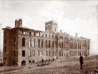 Keywords: Physical Laboratory (Lewis) fire 1900.jpg Lehigh University's Physical Laboratory was built in 1895 but burned down on April 6 1900 It was immediately rebuilt using the same foundations and is now known as Lewis Lab The fire was reported in the Allentown Morning Call the following morning All that remains of that magnificent grey stone structure known as the physical laboratory building of the Lehigh University in south Bethlehem are four walls and just how intact these are is a matter of conjecture and cannot be determined for some time to come <br /><br />The fire started at 8 30 o'clock yesterday morning in the dark room of the photographing and developing room situated in the east wing of the building on the first floor alongside the elevator and it is no doubt to the latter that the destruction is due At the hour mentioned above Prof Franklin was engaged in the photographic room in a series of experiments trying to photograph an electric spark In his experiment he used flash powder and for some reason or other there was an explosion The sparks from the explosion set fire to a curtain and other drapery and in a minute the room was in a blaze The elevator shaft acted as a chimney for the flames and so rapid was the spread of the fire that some of the students got out barely in time <br /><br />The physical laboratory was one of the best-equipped buildings on the ground and filled with costly machinery from top to bottom Its dimensions are 235x44 feet It is four stories high and was erected in 1892 by the late J S Allam the well- known contractor at a contract price of 74 000 The loss on the building and its equipment for scientific study and research amounts to 150 000 The Morning Call 1900-04-06 Author File Physical Laboratory Lewis 1896 jpg PD-old-100 Lehigh University Black and white photographs of buildings Built in Pennsylvania in 1895 April 1900 in the United States Fire-damaged buildings in the United States 1900 in Pennsylvania Photographs taken with flash powder Physical laboratories |