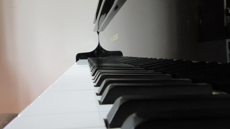 Keywords: piano keys close reflection mirroring piano keyboard musical instrument piano keys black white shiny smooth keyboard instrument music background