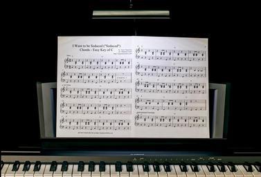 Keywords: piano lesson music keyboard piano pianist practice light darkness music stand music score sheet music dark scores