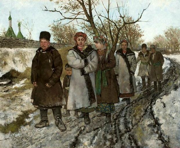 | Keywords: Piątkowski Return from the baptism.jpg Artwork Creator Henryk Piątkowski 1880 oil canvas cm 70 86 Institution National Museum Warsaw Not on view accession number MP 1971 object history ProvenanceEvent gift National Museum in Warsaw credit line H Piątkowski / Ochmatów / 1880 signature/location/date bottom left http //cyfrowe mnw art pl/dmuseion/docmetadata id 16050 show_nav true cyfrowe mnw art pl See below 1932 DEFAULTSORT 1880; Return from the baptism Paintings by Henryk Piątkowski in the National Museum in Warsaw Paintings of Ukrainian peasants Eastern Orthodoxy 1880 paintings Sheepskin clothing in art |