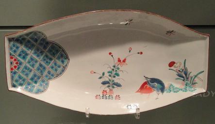 | Keywords: Pickle Dish, c. 1735-1740, Chantilly, soft-paste porcelain with overglaze enamels - Gardiner Museum, Toronto - DSC00620.JPG Exhibit in the Gardiner Museum Toronto Ontario Canada This artwork is in the public domain because the artist died more than 70 years ago Photography was permitted in the museum without restriction Daderot 2012-10-16 14 41 59 Daderot cc0 cc0 Chantilly porcelain in the Gardiner Museum | ||||