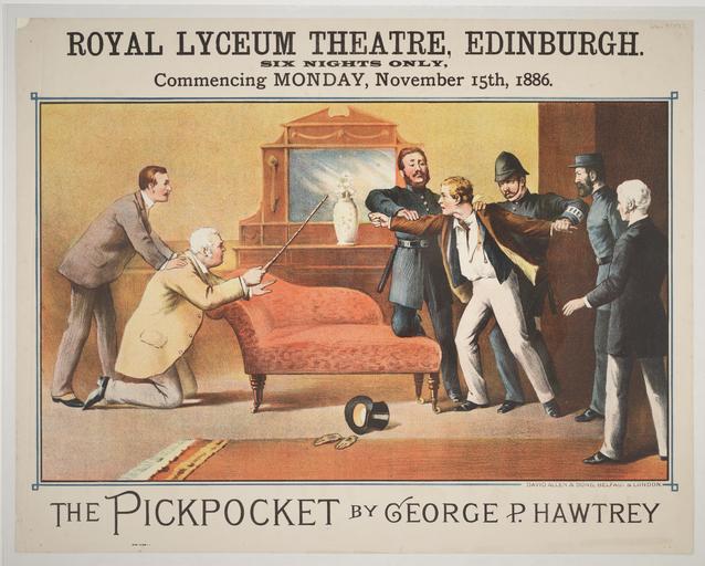 | Keywords: Pickpocket - Weir Collection.jpg Six nights only commencing Monday November 15th 1886 'The Pickpocket' by George P Hawtrey Printed by David Allen Sons Belfast London Size cm 45 57 exhibition history Institution National Library of Scotland Poster object history object type PD-old-70-1923 place of creation Weir 5 33 74593686 Pickpocket - Weir Collection Uploaded with GWToolset Pickpocket - Weir Collection http //deriv nls uk/56YK98Q/7442/74426442 2 jpg Images uploaded as part of NLS-WMUK collaboration Weir Collection Pickpockets |