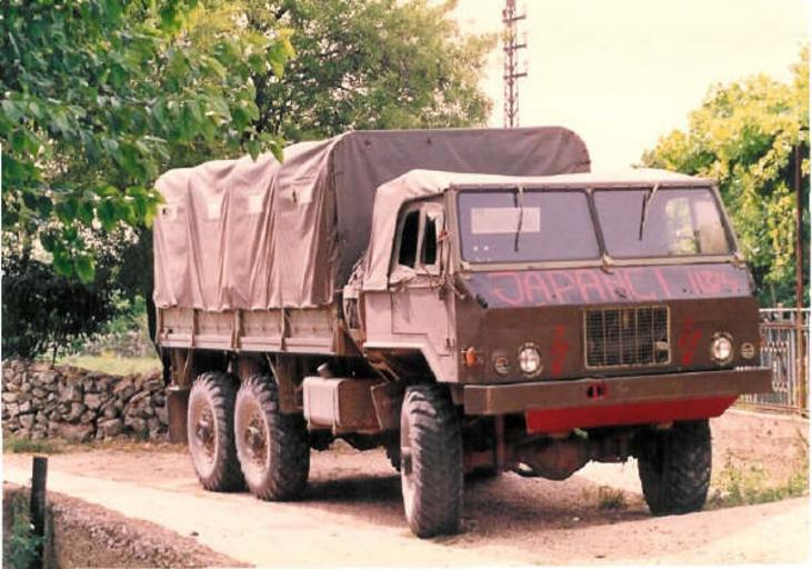 | Keywords: Pickup truck for the combat group.jpg The transporter used by the soldiers of the Croatian Army in the Miljevci plateau incident Jack Nico a soldier from the operation made the photos and told me to make them public domain --Zmaj 12 22 14 August 2007 UTC 1992-06-21 Jack Nico Miljevci plateau incident Military vehicles of Croatia TAM 150 |