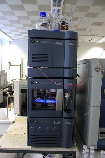 Keywords: Picture of a UPLC device.jpg nl Een foto van ACQUITY UPLC® systeem Van boven naar beneden solvent reservoir PDA detector kolom/oven autosampler en de pompen own Groep29 BFW 2010-06-15 Ultra high performance liquid chromatography