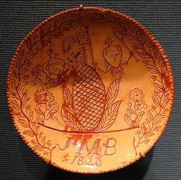 Keywords: Pie Plate, signed JMB, United States, 1823, glazed earthenware - Brooklyn Museum - DSC09546.JPG en Exhibit in the Brooklyn Museum - Brooklyn New York USA This artwork is in the public domain because the artist died more than 70 years ago Photography was permitted in the museum without restriction 2013-10-30 14 30 20 own Daderot other versions cc-zero American ceramics in the Brooklyn Museum Uploaded with UploadWizard |