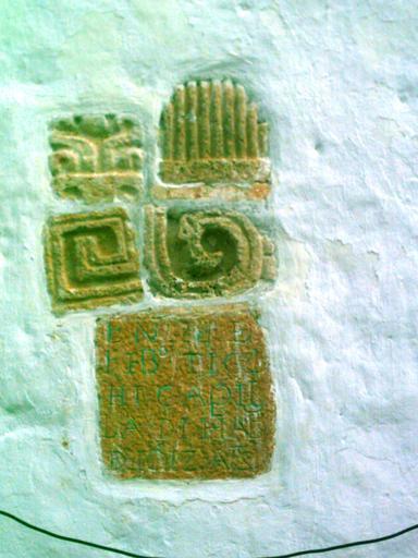 Keywords: Piedras con glifos en la iglesia de Chablekal, Yucatán (09).JPG 21 096615 -89 57692 es Piedras con glifos en la iglesia de Chablekal Yucatán 2012-01-02 own Inri cc-zero Uploaded with UploadWizard Chablekal