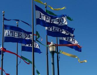 Keywords: pier 39 san francisco flags california blue white sky waving colors windy