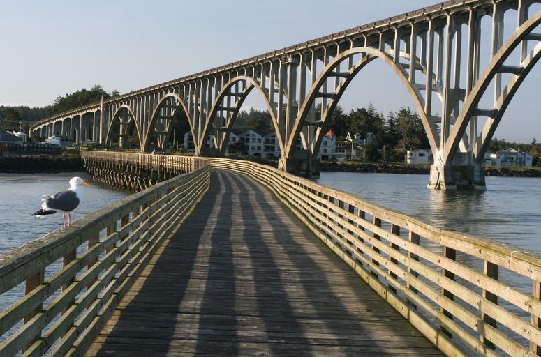 Keywords: pier bridge water seagull bird nature wildlife perched architecture arches wooden harbor shadows cityscape landscape patterns designs
