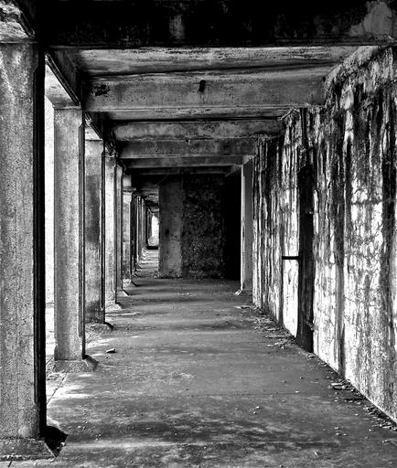 MAKE A MEME View Large Image pier building old decay black and white perspective