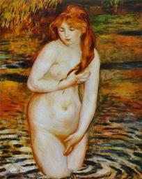 Keywords: Pierre-Auguste Renoir - Jeune Femme se baignant.jpg Artwork 1888 Oil on canvas cm 85 66 Private collection accession number object history credit line bottom right Renoir 88 Renoir peintre du bonheur 1841-1919 de Gilles Néret Köln Taschen 2001 p 321 ISBN 9783822857410 PD-old-auto 1919 Renoir's bathers Paintings of nude women standing in water outdoors Female toplessness in paintings Female long hair in art Women facing left in art 1888 paintings Paintings by Pierre-Auguste Renoir in private collections Taken with Panasonic Lumix DMC-TZ2 |