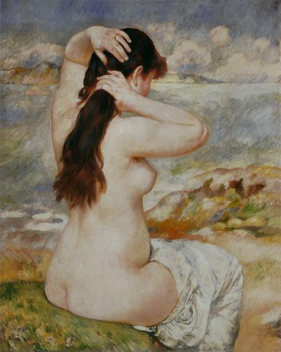 | Keywords: Pierre-Auguste Renoir - La Coiffure (Baigneuse arrangeant ses cheveux).jpg  Artwork 1885 Oil on canvas cm 92 73 Institution Sterling and Francine Clark Art Institute accession number object history credit line bottom left Renoir 85 Renoir peintre du bonheur 1841-1919 de Gilles Néret Köln Taschen 2001 p 306 ISBN 9783822857410 PD-old-auto 1919 Renoir's bathers Paintings of sitting women Female human backs in art Female long hair in art 1885 paintings Sterling and Francine Clark Art Institute Taken with Panasonic Lumix DMC-TZ2 |