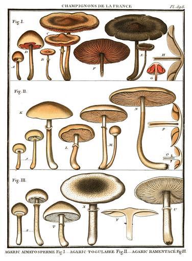 | Keywords: Pierre Bulliard; Herbier de la France; Pl. 595.jpg  en Pierre Bulliard Herbier de la France; Pl 595<br/> Agaricus aimatospermus Agaricus togularis Synonym of Agrocybe praecox Agaricus ramentaceus Basionym of Tricholoma ramentaceum Bull Ricken and Synonym of Tricholoma cingulatum sensu auct http //www biodiversitylibrary org/item/25360 page/35/mode/1up Biodiversity Heritage Library Creator Pierre Bulliard 1792 PD-old-100 Herbier de la France Agrocybe praecox Tricholoma cingulatum Tricholoma ramentaceum Agaricus aimatospermus Jean Baptiste François Bulliard |
