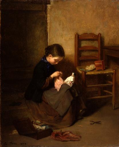 Keywords: Pierre-Édouard Frère - The Little Dressmaker - Walters 3724.jpg A young girl is seated on a step in front of a doorway making a dress for a doll resting on her lap At her left is a chair on which she has placed a miniature chest of drawers and some clothes and on the floor is an open sewing box and a pair of scissors 1858 oil on panel mahogany cm 27 3 21 9 accession number 37 24 15465 Sale French and English Exhibition of Pictures National Academy of Design New York October 29 1859 William T Walters Baltimore October 29 1859 by purchase Henry Walters city Baltimore Walters Art Museum Henry Walters Acquired by William T Walters 1859 Signature Lower left Ed Frére ; Date Lower left 1858 place of origin France Walters Art Museum license 2D Pierre-Édouard Frère French paintings in the Walters Art Museum 1850s paintings from France 1858 paintings |