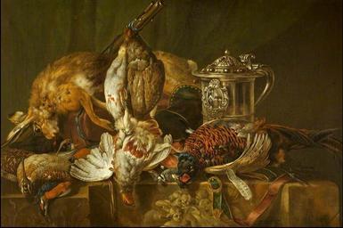 Keywords: Pieter Casteels III - Still Life with Dead Game and a Silver Tankard.jpg Artwork creator Peter Casteels III en Still Life with Dead Game and a Silver Tankard 1732 http //www bbc co uk/arts/yourpaintings/paintings/still-life-with-dead-game-and-a-silver-tankard-100940 Oil canvas cm 75 111 5 National Trust Lacock Abbey Fox Talbot Museum and Village The tankard in this painting bears the Davenport arms which indicates that this was a direct commission from or gift for the Davenport family Other versions PD-old-100 Peter Casteels III 1700s still life paintings |
