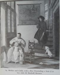 Keywords: Pieter de Hooch - Mother and Child with a Boy descending a Stair.jpg Artwork creator Pieter de Hooch Title Mother and Child with a Boy descending a Stair ca 1668 oil canvas cm 65 55 unknown Private collection P C Sutton Pieter de Hooch Oxford 1980 cat no 81 object history credit line Own Pieter de Hooch Complete Edition by Peter C Sutton Phaidon Press Oxford 1980 ISBN 0714818283 Other versions PD-old-100 Genre paintings by Pieter de Hooch 1668 paintings |