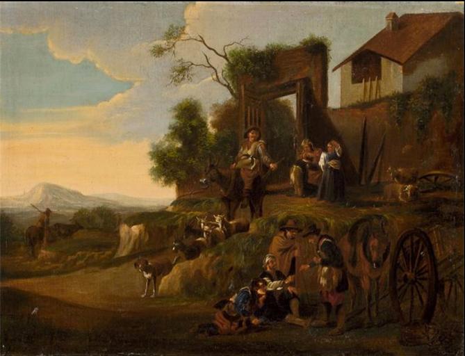 | Keywords: Pieter van Laer - Pastoral scene with beggars outside a barn.jpg Artwork 1630-1641 Oil on canvas size cm 48 65 At Galleria la Bocchella di Maurizio Mottolese object history credit line accession number http //www gallerialabocchella com/ PD-old-100 DEFAULTSORT 1111 Pieter van Laer 17th-century landscape paintings Paintings of beggars |