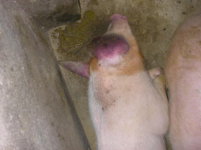 Keywords: Pig blue ears.JPG a pig with Porcine reproductive and respiratory syndrome PRRS Seuchenhafter Spätabort der Schweine Own Dingar Diseases and disorders of pigs Taken with Olympus IR-500