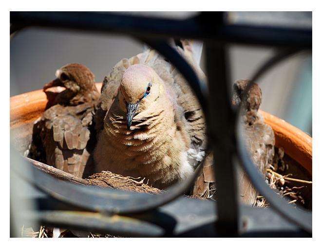 Keywords: pigeon bird bird's nest nature eye head baby mom