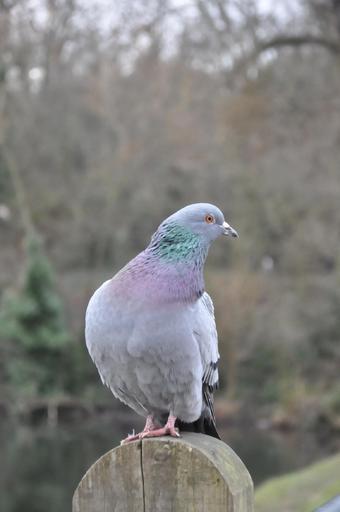 Keywords: pigeon rock pigeon bird perched fence head turned columba livia avian columbidae