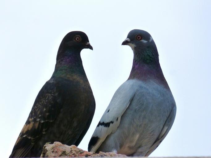 Keywords: pigeons couple white background birds fauna